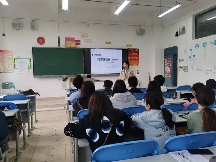 导游资格考试是全国统一的导游职业从业资格考试,据不完全统计,2020年yl6809永利官网集团旅游管理专业共有30名同学通过导游资格考试,获得了导游资格证书,具备导游从业资格。本次通过考试的学生主要集中在大三,大四上学期正好是毕业实习期。为做好这一批学生的职业规划、毕业实习、就业衔接等方面工作,yl6809永利官网集团与贵阳市多彩导服中心、贵州魔法棒公司合作,借助“名导进校园” 活动契机,于2021年4月7日上午10点至12点,在博雅楼3303教室举办一场专题讲座及分享会,特别邀请了贵州魔法棒导服中心卢钰炫总经理和我校15级旅游管理优秀毕业生黄腾瑶到校就导游职业规划、价值观建设、带团实操技巧等方面进行专题讲座和经验分享。