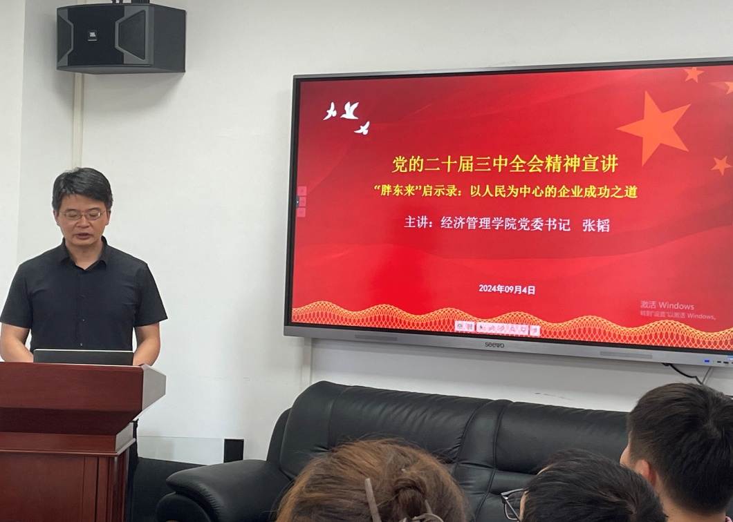 通过“胖东来”的案例,师生们深刻认识到坚持以人民为中心才能实现可持续发展。张韬书记呼吁师生们深刻领会二十届三中全会精神,教师要将其融入教学,培养学生的改革创新意识和实践能力;学生要努力学习专业知识,积极投身社会实践,为未来参与经济管理工作、推动社会经济发展做好准备。
