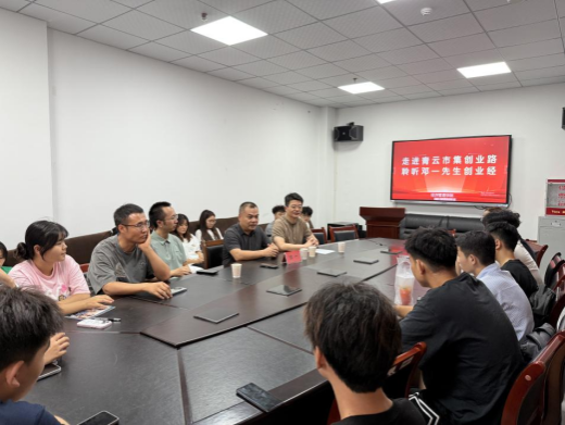 为深化校企协同育人、助学生明晰职业方向,2025 年 9 月 5 日 14:30-15:30,yl6809永利官网集团邀请贵阳青云市集创始人邓一于博雅楼3331开展专题创业座谈会。学院党委书记张韬、学院院长孙庆刚、教师代表李焕臣出席,54名学生现场参与。